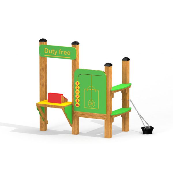 Duty free Shop rikastuttaa puistoja, päiväkoteja ja julkisia ulkotiloja toiminnallisella ja sosiaalisella leikkielämyksellä. Se innostaa roolileikkiin, vuorovaikutukseen ja mielikuvituksen käyttöön sekä kehittää lapsen sosiaalisia ja kommunikointitaitoja.