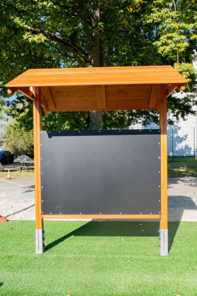 Tämä katos liitutaululla on erinomainen valinta niin leikkipuistoihin kuin koulujen ja päiväkotien pihoille. Se tarjoaa suojaisan paikan tauolle, eväsretkille sekä yhteisölliseen toimintaan, ja liitutaulu innostaa niin opetukseen, peleihin kuin luovaan ilmaisuun. Katoksen alla lapset ja aikuiset viihtyvät säällä kuin säällä, ja monikäyttöisyys tekee siitä arvokkaan osan jokaista ulkotilaa.
