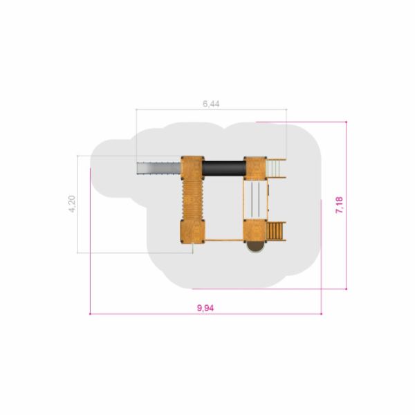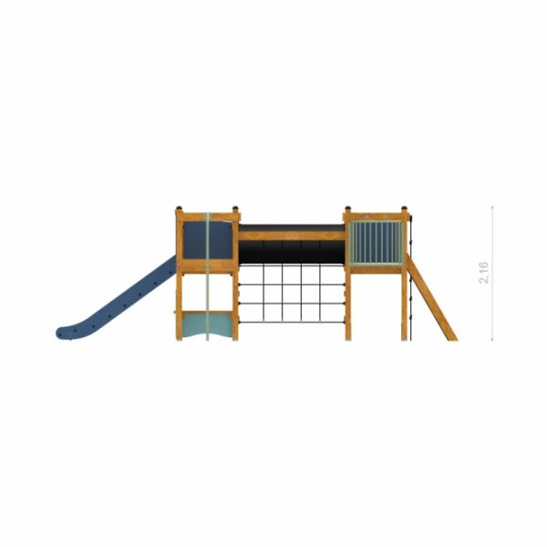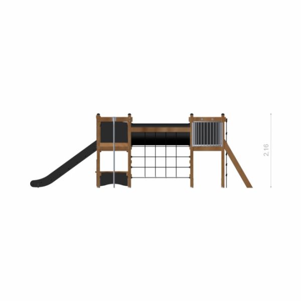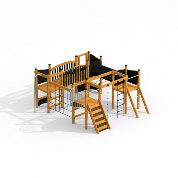 Tämä leikkikeskus on ihanteellinen valinta julkisiin leikkipuistoihin, koulupihoille sekä taloyhtiöiden ja muiden yhteisöjen ulkoalueille. Monipuoliset kiipeily- ja liukumismahdollisuudet houkuttelevat lapset liikkumaan ja kehittämään motorisia taitojaan, samalla kun luonnollinen ulkoasu sulautuu harmonisesti erilaisiin maisemiin.